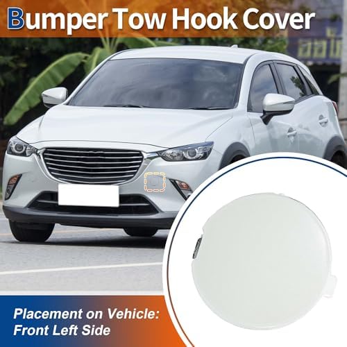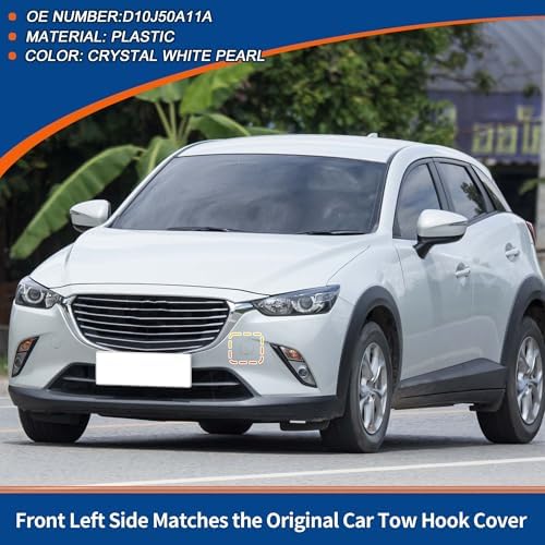 ACROPIX Front Left Driver Side Car Bumper Tow Hook Cover Tow Cover Cap Crystal White Pearl Fit for Mazda CX-3 2016-2021 No.D10J50A12A - Pack of 1