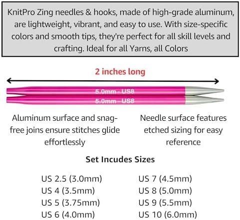 - Perfecto para Proyectos Pequeños: El Conjunto Mini Intercambiable de Agujas KnitPro Zing está diseñado para los entusiastas de pequeños proyectos de tejido como sombreros de bebé, calcetines y mangas. Es portátil y compacto, ¡un imprescindible para cada artesano!