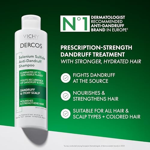 Champú Anticaspa Dercos Sulfato de Selenio, Tratamiento para Cuero Cabelludo Seco y Alivio del Picor. Fuerza de Prescripción Comparable a 2% Ketoconazol, para Cabello Prone a Caspa Leve a Severa y Cuero Cabelludo Escamoso y Picante
