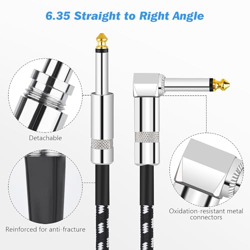 Guitar Cable, Instrument Cable, Bass Cable, Guitar Cord 10FT, 6.35mm Straight Curved Audio Cable for Various Musical Instruments - Electric Guitars, Electronic Keyboards, Speakers
