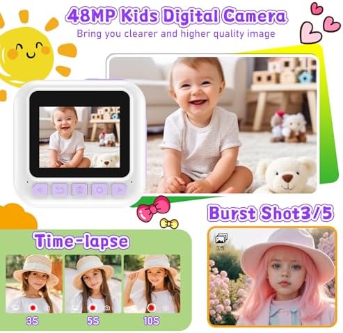 - Multifunctional Kids Camera Instant Print - All-in-one kids camera for photography, video, music, and games, portable and easy to use, specially designed for kids aged 3-12. Come with a 2.4 inch HD screen, 1080P video record, 4 puzzle games, supports MP3 music play, playback, multi-language, print photos, flash, date setting, etc. Kids Toy cameras meet your child's daily photography fun and record beautiful moments with family or friends