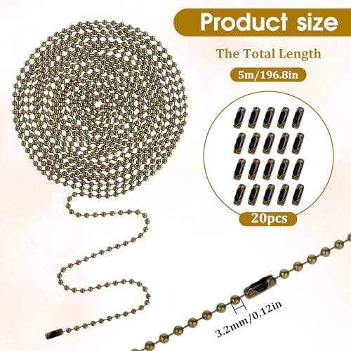 Ceiling Fan Pull Chain 197 Inch Pull Chain String Extension Metal Beaded Ball Light Pulls Extension Chains with 25 Pcs Connectors 3.2mm Diameter Bead Chain Long Ceiling Fan Chain Connector (Bronze)