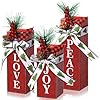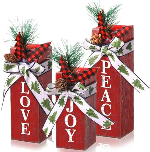 - Festive Christmas Design: Our Xmas rustic table centerpieces are in classic Christmas red and green colors, with a bow design on the top, paired with pine cones, pine needles, red and black buffalo plaid Christmas trees, etc.; The decorative surface has symbols of peace, joy and love, beautiful and delicate, can be an eye-catching Christmas decoration, making your Christmas party decorations interesting and happy