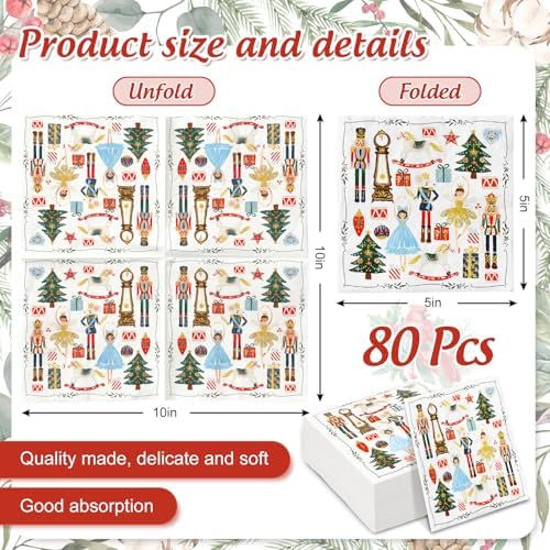 AnyDesign 80Pcs Christmas Cocktail Napkins Watercolor Nutcracker Disposable Paper Napkins Beverage Napkins for Xmas Party Tableware Supplies