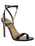 Detailed with a delicate chain the GUESS Miamy is ready for a night out on the town. This stiletto heel gives a sophisticated look featuring an ankle strap closure. Est. 1981, Guess is a global lifestyle brand and a symbol of a young, adventurous lifestyle. Open/Square Toe ; Buckle Closure Man Made Upper 3.94" heel height