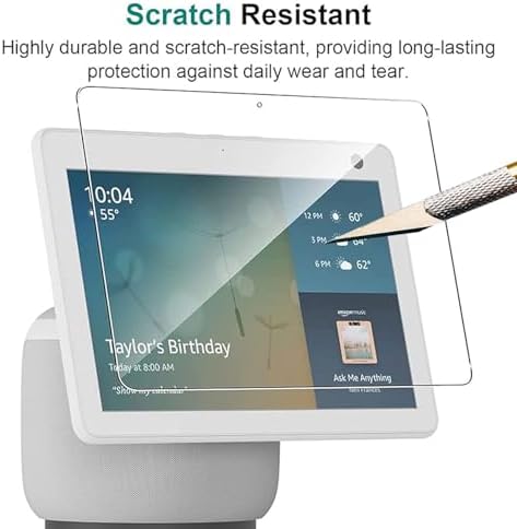 Designed for Echo Show 10 (3rd Gen) Please noted: Our shatterproof screen protector is designed to be slightly smaller than the actual display screen, The perfect amount of space around the edges allows for seamless case compatibility, preventing any bubbling or peeling. 【High Clarity & Bubble Free】High clarity provides excellent visibility and maintains the original touch experience of the screen .Bubble free design allows quick and easy bubble free self-installation. 【Anti-Fingerprint】 99.99% High-definition clear hydrophobic and oleophobic screen coating protects against sweat and oil residue from fingerprints, and enhance the visibility of the screen. 【Anti-Shatter & Scratch-Resistant】 The outer tempered glass screen protector is designed to be anti-shatter and scratch-resistant, providing maximum protection while still allowing you to enjoy a clear, crisp display. 【High quality service】 Please view our installation tutorial before installation. Removing dust and aligning.