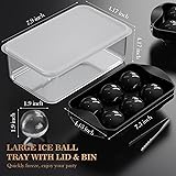 Whiskey Ice Cubes Mold 2 Pack - Round Ice Cube Mold & Ice Ball Maker Set with Storage Bin, Ice Cube Trays with Lid, Tongs for Bourbon & Cocktails, Gifts for Whiskey Lover