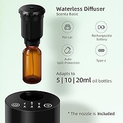 Waterless Essential Oil Diffuser Aromatherapy Scent Diffuser for Home Large Room, Bedroom, Car, Office, Desk, Battery Operated Mini Portable Air Freshener,4 Timers & 3 Mist Levels (Black)