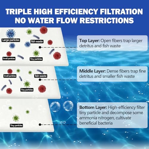 - Highly Effective Filtration: UBeesize filter media is specially designed for aquariums or pond, with excellent filtration effect, utilizing dense fibers to capture fine impurities, which can effectively remove debris and particles, significantly improve water quality, contribute to the health of aquatic organisms
