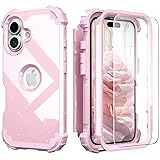 IDweel for iPhone 16 Plus Case with Screen Protector, 3 in 1 Shockproof Slim Fit Hybrid Heavy Duty Hard PC Cover Soft Silicone Bumper Full Body Anti-Fingerprint Case, Glitter Pink
