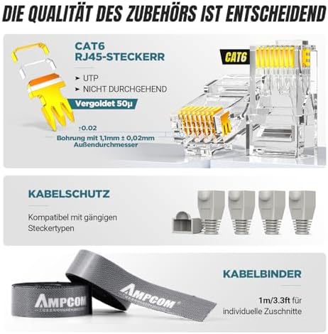- 【Decent Set (7 PCS)】 :RJ45 Crimping Tool × 1pc , Stripping tool × 2pc, Flush Cutter× 1pc; Hook and Loop Cable Management Strap(Black) × 1pc; 50U Gold Plating CAT6 RJ45 Plug × 30pc; RJ45 Boot × 30pc; Replacable Extra Blade for Network Crimper × 5pc; EVA Waterproof, Chemincal Resistant Bag × 1pc
