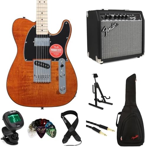 The Squier Affinity Series Telecaster puts authentic Tele feel, tone, and stage-ready presentation into your hands at an outstanding price point. This Affinity Series Telecaster adds more value than ever before! An upgraded solid okoume body provides deluxe looks and superb resonance with mahogany-like traits. The body is topped with flame maple for dashing premium looks, and a maple top brings out more of those twangy, stinging treble frequencies that Telecaster fans go wild for. A solid “C”-shape, bolt-on maple neck offers endless hours of comfort and playability onstage, in the studio, or in the garage as you explore your style across genres. Two ceramic pickups provide signature Tele sounds in humbucker and single-coil form — that’s two styles of bright, full, and bold tone. New players and advanced musicians alike will revel in the capabilities of the budget-friendly Fender Frontman 20G combo amp. The 8-inch Special Design Speaker packs 20 watts of pure Fender decadence: simply plug your axe in and you’ll experience a wealth of sublime tones. Dial in the sound you want with the Frontman’s clean channel featuring volume and EQ knobs; then explore the Drive channel equipped with its own volume to really crank it. A 1/8-inch auxiliary in and a headphone jack leave options open for various connection and playing modes, proving there’s something in the Frontman for everyone! Fender Accessories included: Gig Bag, Tuner, Strap, Picks, Stand, and Instrument Cable