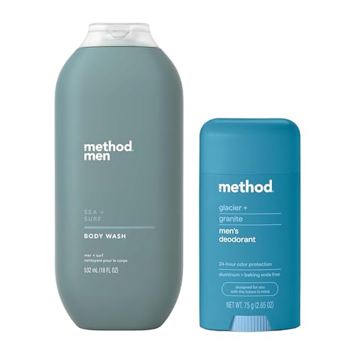 Bundle of Method Sea + Surf Body Wash, 18 oz (Pack of 1) + Method Glacier + Granite Deodarant, 2.65 oz (Pack of 1)