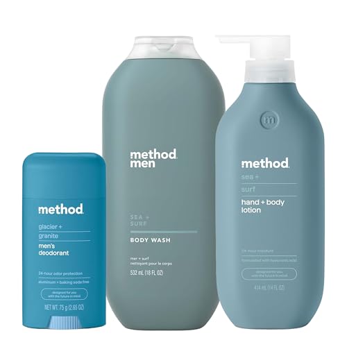 Bundle of Method Sea + Surf Body Wash, 18 oz (Pack of 1) + Method Sea + Surf Body Lotion, 14 oz (Pack of 1), + Method Glacier + Granite Deodorant, 2.65 oz (Pack of 1)