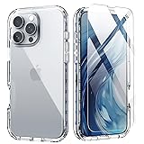 IDweel for iPhone 16 Pro Case with Screen Protector,Hybrid 2 in 1 Shockproof Soft Slim Fit Transparent Clear Silicone Protective Case with TPU Bumper Cover,Clear