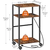 HOOBRO Computer Tower Stand, 3-Tier PC Tower Stand, PC Stand with Charging Station, Mobile CPU Stand Fits Most PC, Adjustable Shelf, for PC Tower, Printer, Home Office, Rustic Brown BF12UCJ01