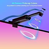 The First Immersive Smart TV LED Backlight with AR Technology: Our AR capture scheme for real-time color matching, no latency and more accurately. Best of all you can get this LED light at a much lower cost and without worrying about a camera looking at your TV stealing privacy (unlike other camera lenses, but AR smart pick-up color sensors), allowing you to fully immerse yourself in your movie or game Adjustable Telescoping Pole Fits all TVs from 24-100 inch, PC and Monitors of all Thicknesses: 14.8FT TV light, fully matches 65inch TV. If more than 65inch, such as 100inch, it covers the 3 side Remote Control and Music Sync: Manage your LED lights for TV with remote or control box. Enjoy access to colors/sence/and features like timer and music mode, helping you create the ambiance you need without network Enhanced Double 5050RGB Light Beads: Enjoy oversized chips, pure gold lines with denser RGB double the light beads for more vivid and natural lighting while relieving eye fatigue. Fully waterproof coating to better protect the TV light strip. The control box of the LED lights for TV is equipped with a built-in mic, helping you sync them to music Plug and Play: AR smart pick-up color sensors captures the color on screen and automatically applies to your TV backlights with an intelligent algorithm. TV sync led lights are Plug and Play, no complicated installation nor any calibration required