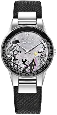Citizen Women's Eco Drive Maleficent's Charm Box Set, Disney Villains, Stainless Steel, Black Leather Strap Watch (GA1080-41Y)