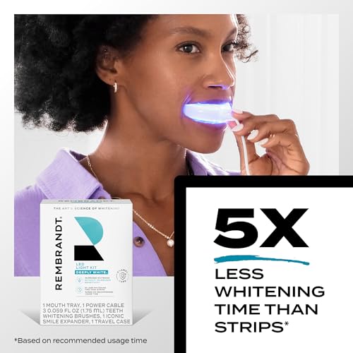 Rembrandt Teeth Whitening Kit, Deeply White, with LED Light Teeth Whitening Trays, 3-Way Power Cable, 3- Teeth Whitening Gel Brushes, 1 Iconic Smile Expander, 1 Travel Case