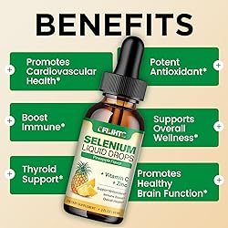 COMPREHENSIVE IMMUNE SUPPORT: Formulated with Selenium, Vitamin C, and Zinc, our selenium liquid drops provide essential nutrients that contribute to overall wellness and help your body maintain normal immune function DAILY ANTIOXIDANT SUPPORT: Selenium, along with Vitamin C, offers valuable antioxidant benefits, helping to maintain the body's natural defense mechanisms and supporting general health THYROID & HEART SUPPORT: CFILIHTC selenium drops contribute to normal thyroid function and general cardiovascular health, aiding in the maintenance of overall well-being ENHANCED NUTRIENT ABSORPTION: Featuring L-Selenomethionine, a highly bioavailable form of selenium, this liquid selenium supplement is designed for effective nutrient absorption, allowing the body to better utilize these key ingredients for enhanced health benefits REFRESHING FLAVOR: Enjoy the natural pineapple flavor in each drop. This liquid selenium format offers a convenient and enjoyable way to incorporate selenium into your daily routine, ideal for those who prefer alternatives to capsules or tablets