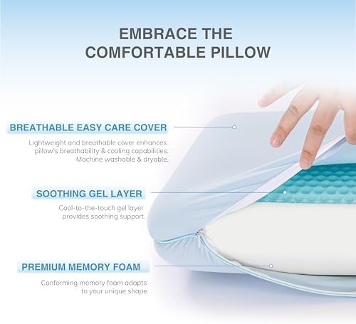 - 【REVERSIBLE DESIGN】This gel pillow features cooling fabric on one side for an unrivaled cooling sensation upon contact, and comfortable memory foam on the other side for strong support. This dual-sided design ensures seamless comfort throughout the year.