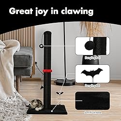 MECOOL Cat Scratching Post Premium Sisal Scratch Posts with Hanging Ball Vertical Scratcher for Indoor Cats and Kittens,Black
