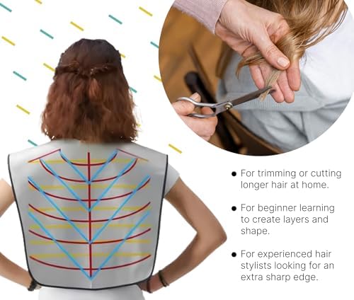 - This hair dye cape guide for hair cutting with clear angular and straight guidelines, perfect for trimming or cutting longer hair at home or at a salon.
