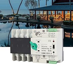 ?【MAIN PARAMETER】 Rated current for : 63A/100A (Optional) | Insulation voltage for : AC690V AC | Rated voltage for : AC400V AC | Rated Frequency for : 50Hz/60Hz | Electrical level for : PC grade isolated type | Rated shock withstand voltage for : 8KV | Control circuit for : Rated control voltage Us for : AC110V 85% Us 110% Us | Touch time for : <50ms | transition time for : <50ms | Return time for : <50ms | Closing time for : <50ms ?【PREMIUM MATERIAL】 The generator changeover switch is made of flame retardant PC material , with good insulation , high temperature and other characteristics , very rugged and durable , and the use of silver contacts , anti aging , and for , and greatly improves the conductivity and service life . ?【FOR HIGH STABILITY】 When there is an abnormality in the normal power supply , the electrical selector switch can instantly switch to the emergency power supply , supporting both automatic and manual , switching in milliseconds without cutting off the power supply , ensuring continuity and reliability . ?【EASY INSTALLATION】 The emergency power changeover switch is compact , measuring only 143*96*69mm / 5 . 63*3 . 78*2 . 72inch , lightweight and easy to install , and can be mounted on a standard 35mm DIN rail , making it easy to adapt to most applications . ?【WIDELY APPLICABLE】 This 4P 110Vpower automatic transfer switch can be used in various places where continuous power failure is not allowed , such as bars , restaurants , KTV , etc . In addition , thispower automatic transfer switch is also very suitable for home use .