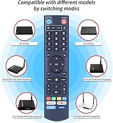 ⚠️Some functions are Not available? Please follow the steps below - 1) Press and hold [POWER] key for 5 seconds. the LED goss from blinking to solid and STB RCU enters Learning Mode. 2) Press the key to be programmed on this RCU. LED begins blinking slowly. The key is ready to accept programming. 3)Aim the TV RCU towards the front of this RCU(distance less than 3cm) Press the button on the TV RCU. If the STB RCU is programmed correctly, the LED will flash 3 times. 4)Repeat steps 2-3 for other keys and Exit learning mode by pressing any other button on this RCU. LED turns off 【ONLY Compatibility】this V3 Pro voice remote control work with part vSeeBox models, Including for vSeeBox V5 Pro / V3 Plus/V3 Pro / V2 Pro / V1 Pro/V1 Max/Elite/Max. Tips: V1 Max, V1 Pro, V2 Pro (No Voice Command Feature). Please make sure your box model is in the above list 【Enhanced Connectivity】Equipped with cutting-edge technology for lightning-fast pairing, rock-solid stability and extended range, Makes the connection process more convenient! 【Two working modes】V3 working mode and V2 working mode. Press and hold the number key 5 for more than 10 seconds and the indicator light flashes, indicating that the mode switch is successful. V3 Pro working mode is applicable to V3 Pro; V2 Pro working mode is applicable to V1 Pro/V2 Pro/Max/Elite.(Note: Vseebox V3 remote control defaults to V3 working mode) 【How to Use the V3 Remote Control On V1 Pro/V2 Pro/Max/Elite?】Press and hold the OK and vol- keys simultaneously (about five seconds) until the remote control indicator light continues to flash, which means the Bluetooth of the V3 remote control is enabled. Pair the remote control under System Settings - Bluetooth - Pair New Device, find the vseebox remote control, and connect to the vseebox. (If it is not found, it may be that Bluetooth is not turned on. Please press and hold the OK and vol- keys on the remote control at the same time to turn on Bluetooth) 【Package Including & After-Sales Service】1* Replacement Voice Remote Control for vSeeBox V3 Pro;If your device models is not on the compatible list, please contact us via amazon messaging tool. We can check it for you.