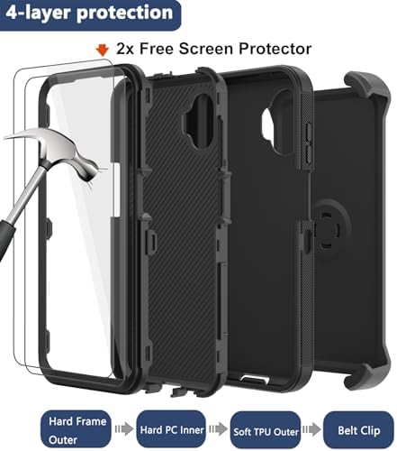 for Samsung XCover6 Pro Case with Belt Clip Holster, 2X Screen Protector, Heavy Duty Military Grade Full Body Shockproof Rugged Protective Phone Case for Samsung Galaxy XCover6 Pro (Black)