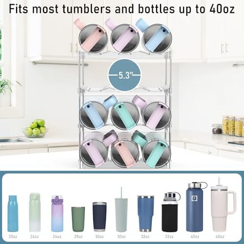 • Gift Choice: The water bottle cup organizer is user-friendly and durable, perfect for storing water bottles, coffee mugs, travel cups, insulated bottles, sports bottles, straw cups, baby bottles, and beverages. It makes a practical and stylish gift for family gatherings or friends' get-togethers.
