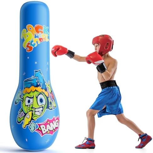 Punching Bag for Kids, 63 Inch Kids Punching Inflatable Kids Punching Bag for Kids 3-12, Punching Bag with Bounce-Back Action Set for Practicing Karate, Taekwondo
