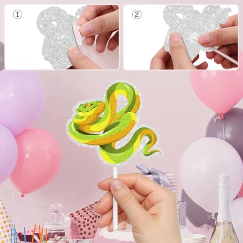 18pcs Snake Cupcake Toppers Set Reptile Themed Kids Birthday Happy Cobra, Viper Decoration, Pet Party, Baby Shower, Boys and Girls Birthday Party Decoration Supplies, Birthday Gifts for Kids. LIANGSS