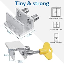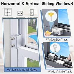 【MEASURE YOUR WINDOWS TRACK】The window lock is apply for sliding windows, sliding doors and vertical windows.please measure your window track size height must be greater than 0.48inch (1.22cm) and width must be less than 0.61inch (1.55cm) before ordering window locks. window locks is equipped with a vertical key, which can be applied to the middle track of the window. 【2024 ENHANCED SECURITY DESIGN】1, window lock and key separation design, to prevent children or thieves to unlock at will; 2, thickened aluminum alloy material, permanent durability and not deformed; 3, window lock two fixed hole design, so that you can experience a stronger security protection; 4, the lock body widening design, open the window when the blocking area is more solid; 5, the window lock is equipped with a protective washer, to prevent scratches or damage to the window. 【EASY TO INSTALL】 Our window lock offer two mounting options for different widths of window track.Each set of window locks comes with a hex wrench and a vertical wrench. Both methods are easy to install.No additional installation tools or drilling required,3-step quick installation.step1,place the lock to a suitable position.Step2,Insert gasket protect window track from scratches.Step3,tighten the screws,done!you can easily fix the window lock at any part with the vertical key or hex keys,easy to reuse and re-install. 【VERSATILE USABILITY】The window lock is adjustable in width, making them suitable for most sliding window and doors. The window locks are versatile enough to be used on most types of sliding window and doors, including living room window, sliding glass window, patio sliding doors, and more. They are small and lightweight, making them perfect for travel. You can take them with you to hotels or rental properties to enhance the safety of your temporary accommodations. 【What's You Get】4 security window locks, 4 mounting hex keys, 4 protective gaskets, 1 vertical key for mounting to center track.Great thanks for choosing us and we care about the customer's purchase satisfaction.If you have any questions while using,just feel free to contact us,we will reply to you within 24 hours and surely offer you a satisfied solution.