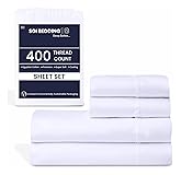- SGI 400 Thread Count 100% Egyptian Cotton Queen Sheet Set Ultra Soft, Breathable, Deep Pocket 15 Fitted, Durable & Luxurious 4-Piece Bedding Set for Hotel-Quality Comfort, White Sheets