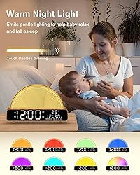 - 【Sunrise Simulation】Redefine the way to get up, light is a great alarm clock for your body clock, to keep your lifestyle in tune with nature, when the human body is exposed to light, the body parts gradually transition from deep sleep to light sleep, the metabolism will be accelerated, can effectively inhibit the secretion of melatonin, wake up by light to provide the brain with a slow wake up process, give the body a chance to buffer up, people's consciousness began to wake up,can reduce the possibility of falling back to sleep. 【Sleep Aid White Noise Sound Machine】Still plagued by insomnia? Relieve insomnia, we come to solve the problem, this bedroom digital alarm clock has 13 kinds of white noise, 13 kinds of white noise tracks, music and nature sounds can be used with the soft warm light effect, effectively create a soothing atmosphere, become a soothing device for your baby, soothe the tension of the working day, help the brain relax and enter a deep sleep state. 【Dual Alarm Clock】This Sunrise Alarm Wake-Up Light can be set to have 2 alarms with different times or wake-up modes, and can be set to ring on specific days, e.g., only on weekdays.The alarm sound can be adjusted to 10 volumes, so you can choose the appropriate volume for the wake-up alarm. 【Sensitive Touch Night Lamp】In light mode touch the metal frame to easily switch the light color, in sleep aid mode, touch the metal frame to switch the sleep aid music, when the light is monochromatic, long touch the metal frame to infinitely adjust the brightness, this night light has a wide range of colors and brightness levels to choose from, the light comes in a wide range of colors, including rainbow and all colors in a cycle, you can choose the color you like best. 【Delayed Shutdown Sound And Light】You can set 30 minutes, 60 minutes, 90 minutes and 120 minutes timer, you can go to sleep unconsciously under the mild light and natural white noise. 【USB Charging Output】 after the overall plug-in use, powered by the included USB cable, plugged in and ready to work, the alarm clock wake-up light has a USB port for charging cell phone. 【 Power failure memory function】don't worry about resetting the time after power failure, there is a memory function, continue to start after the incoming call, the time will not be wrong. 【 Different lights, different atmosphere】 warm light (4000k color temperature), 7 kinds of monochrome, 5 kinds of phantom a total of 13 kinds of light switching, suitable for a variety of scenarios, to provide a joyful atmosphere, to enhance feelings. 【Multi-function white noise sunrise alarm clock touch bedside lamp】It can be a desk lamp, dual alarm clock, thermometer: (℃/℉), large screen clock (12/24), calendar, USB interface can be used to charge USB devices. Is birthday, Easter, Halloween, Christmas, Children's Day, etc. for children, girls, boys, an ideal item for all ages. Passed FCC/ROHS certification. There is a two-year validity period, if you have further questions about the product, please feel free to contact us!