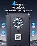 【Multiple Unlocking Methods】ELECTOP Smart Key Lock Box integrates multiple security and convenience unlocking functions: fingerprint recognition, password input, Bluetooth connection and exclusive App control, ensuring that you don't have to worry about being turned away under any circumstances. Fingerprint Lock Box supports storing up to 60 fingerprints to ensure that family members or trusted visitors can enjoy exclusive and convenient access. 【APP Remote Access】The APP remote control can generate a one-time-use temporary password for visitors, and share the key with family or friends to ensure peace of mind every time you open the door. In addition, you can also view the unlocking history in the APP. Note: The password key box focuses on APP remote temporary password generation, and does not cover Bluetooth and APP remote unlocking functions. 【Flexible Installation】Our smart key box is equipped with strong adhesive, allowing you to easily stick it to the door or smooth wall without drilling, ready to use. The unique lock beam hook design makes it easy to hang the fingerprint key lock box on the door handle for quick installation. In addition, the Bluetooth key box can also be securely fastened to the wall with screws, providing extra stability for long-term use. 【Durable & High-Security】Our key lock box is made of high quality ABS material for a sturdy and durable construction. Seamless embedded design effectively resists prying and theft. The smart fingerprint code key box has IP54 waterproof, windproof and dustproof features, and can work stably under the temperature conditions of -20℃ to 60℃, providing all-weather guarding for your key security. 【Double Security Insurance】The key lock box is built-in with 3 AAA batteries (please remove the insulating tabs before use) for extra long battery life, providing you with reliable security you can trust. If the batteries run out, you can power up the key box with the help of the included Type-C cable, ensuring that you will never be locked out of your door. In addition, the APP can monitor the battery status, effectively avoiding the embarrassment of locking out due to negligence.