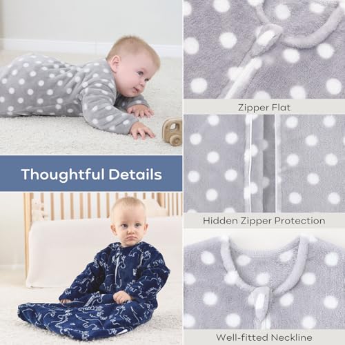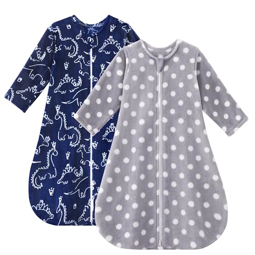 Yoofoss Long Sleeve Fleece Baby Sleep Sack 0-6 Months, 2 Pack TOG 1.5 Baby Wearable Blanket with 2-Way Zipper, Toddler Sleeping Sack, Soft Warm