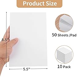 Blank Note Pads: 5.5x8.5 inches memo pads come in a pack of 10 pad books, with 50 sheets each pad, which is great for jotting down grocery lists, to do lists, phone numbers, taking messages, etc. Perfect for waiters and waitresses Tear off Easily Without Falling Apart: Our note pads are durable and the adhesive binding holds up well, even after multiple pages have been torn off. The pads of paper are smooth and sturdy so that your pen does not rip through the paper No Bleeding Through: The blank note pads are made of 80GSM paper, thick and bright white so ink does not bleed through to other papers, doesn't tear while writing as well. The blank scratch pads are suitable for gel pen, pencil and pen of any type Portable Memo Pads: These notepads with a cardboard back are the perfect size to fit in your pocket, car or office desk, making them extremely portable and convenient. You can take notes of all sorts of things without wasting paper Perfect for Quick Notes: Whether you need them for work, study, creating grocery and shopping lists, doodle or recording meeting notes, these unlined notepads cater to every need. The scratch pads are indispensable at home or office. These memopads are NOT STICKY