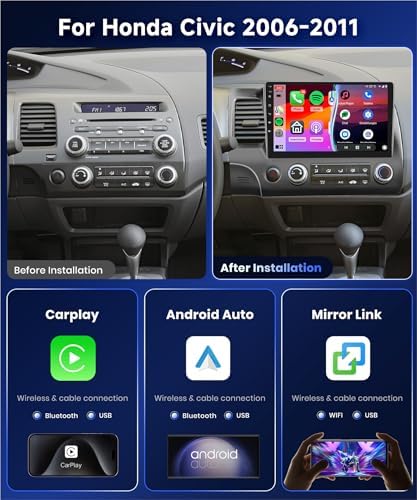 - 【For Honda Civic Car Radio】: The Android Car stereo fits for Honda Civic 2006 2007 2008 2009 2010 2011,car stereo is equipped with Honda Civic frame accessories,plug and play,package included installation tools.Before purshasing,please check your car models/years/shape of center console