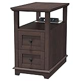 HIFYOBRO Narrow End Table with Flip Top Charging Station, Side Table with 2 Drawers, Type-C & USB Port & Power outlets, Wooden Storage Cabinet, Side Table with Storage for Living Room Bedroom