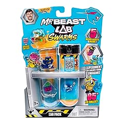 - Step into the chaos of the lab, where a groundbreaking experiment has spiraled into unexpected madness, unleashing the wildly unpredictable MrBeast Lab Atomic Swarms. As the lab lights flicker and the fizzing bubbles simmer, you’ll find yourself in the middle of the action, ready to create two of your very own chaotic, MrBeast-inspired Micro Beasts! Just add water to the test tube, give it a vigorous shake, and watch as two Micro Beasts burst forth from a vibrant explosion of orange fizz But that’s just the beginning! The remaining three Micro Beasts don’t need any experimenting, they’re ready to join your collection right away! Will you get an ultra-rare or a special edition Micro Beast? With over 85 unique 1-inch (2.5 cm) MrBeast Swarms characters to collect—including the rare and coveted Silver Mystery Case—adventure and discovery are just a shake away. But act fast; only 1,000 Silver Mystery Cases are available in this NEW Atomic Series! Each Micro Beast belongs to its own distinct team, such as the spine-chilling Home Horrors or the electrifying Techno Terrors. Which team will you complete first? Embrace the chaos! Mix, shake, and embark on an exhilarating experiment with the all-new MrBeast Lab Swarms Atomic Series!