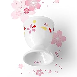 Cinf Sakura Ceramic Egg Cups & Cracker Set | Set of 4 Ceramic Egg Cups + 4 SS Spoons + 1 Egg Topper Breakfast Boiled Cooking Easy to Clean Childhood Memories Kitchen