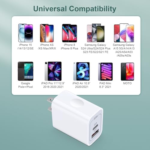 - Universal Compatibility : This usb c google Pixel charging block supports both USB-C and USB-A ports, making it compatible Google Pixel 10/10 Pro XL/9A/ 9/9 Pro XL/9 Pro/9 Pro Fold/ 8 Pro 8 7a 7 Pro 7 6a/6 Pro/6/5 XL/5/4 XL/4/3 XL/2 Samsung galaxy A15 5G A14 5G A54 5G A13 A24 S24 Ultra S24 S24+ S23 Ultra S23 FE S23+ A53 A03s A23 A34 A25 F54 A04s F34 S22 S21 FE S20 Z Fold5 4 3 Z Flip5 4 3 S10e S10 S9 S8 F23 A42 A12 A33 A52 Note 20/10/9; iPhone 16/iPhone 16 Pro Max/iPhone 16 Pro /IPhone 16 Plus/iPhone 15 Pro Max/15 Pro/15 Plus/15,14,13,12,11,SE,Xs Max/Xs XR X 8 7 6,Motorola Razer/Edge 2024 etc