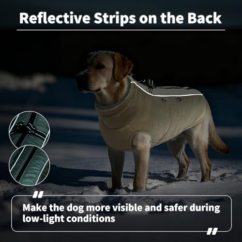 IDOMIK Warm Dog Coat with Harness, Waterproof Reflective Dog Jackets for Small Medium Large Dogs, Fleece High Collar Winter Jacket with Zipper, Pet Winter Snowsuit Clothes for Cold Weather,Khaki M