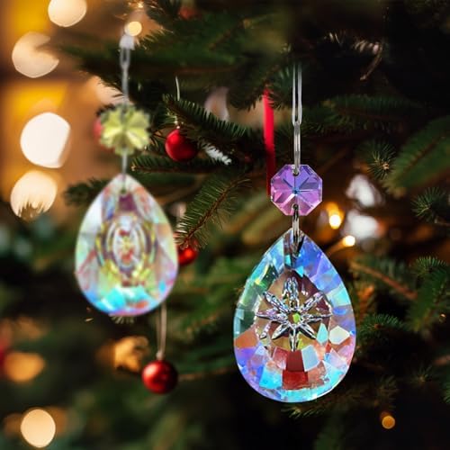 - Stunning AB Color Teardrop Design: These 12pcs AB color teardrop crystal ornaments add a dazzling rainbow-like glow to your Christmas tree, reflecting light in a way that instantly elevates any holiday décor. The shimmering AB color coating captures festive lighting perfectly, making your tree sparkle with elegance and charm