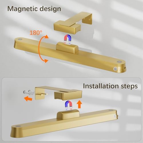 Picture Lights for Wall Battery Operated, 2-Pack 16in Magnetic Rechargeable Picture Light with Remote, Dimmable, Timer Painting Light,Art Display Light for Picture Frame Artworking Portrait, Gold