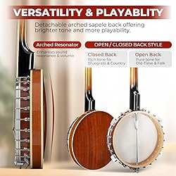 - Vangoa 5 String Banjo Full Size Kit, 38 Inch Nylon Banjo Adult Beginner Pack, with Detachable Resonator Back, Frosted Remo Drumhead, Premium Accessories, Starter Banjo for Teens, Brown