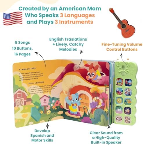 - Introduce Language Learning Through Music: This interactive musical book features 8 captivating Spanish songs with English translations, making it perfect for libros para niños en español and libros en español para niños. Designed to encourage bilingual development, it’s an excellent libro interactivo para niños en español and ideal for families seeking cuentos para bebés de 0 a 12 meses español to inspire early language skills through music and play.