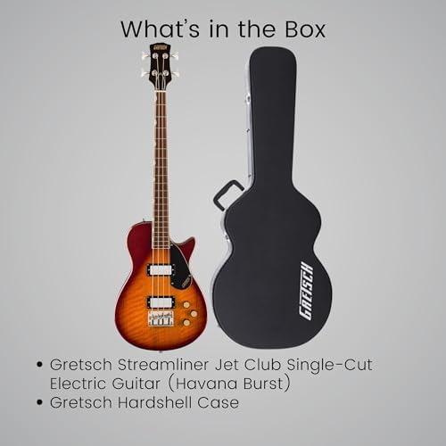 - Bundle Includes: Gretsch Streamliner Jet Club Single-Cut 4-String Bass Guitar with Laurel Fingerboard (Havana Burst) and Gretsch Jet Bass and Baritone Hardshell Case (Black)
